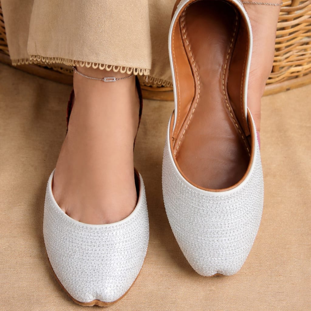 Khussa is a traditional handcrafted footwear from South Asia, known for its intricate embroidery, vibrant designs, and comfortable fit. Made from soft leather and often adorned with beads, sequins, or threads, Khussa reflects cultural heritage, elegance, and timeless style.